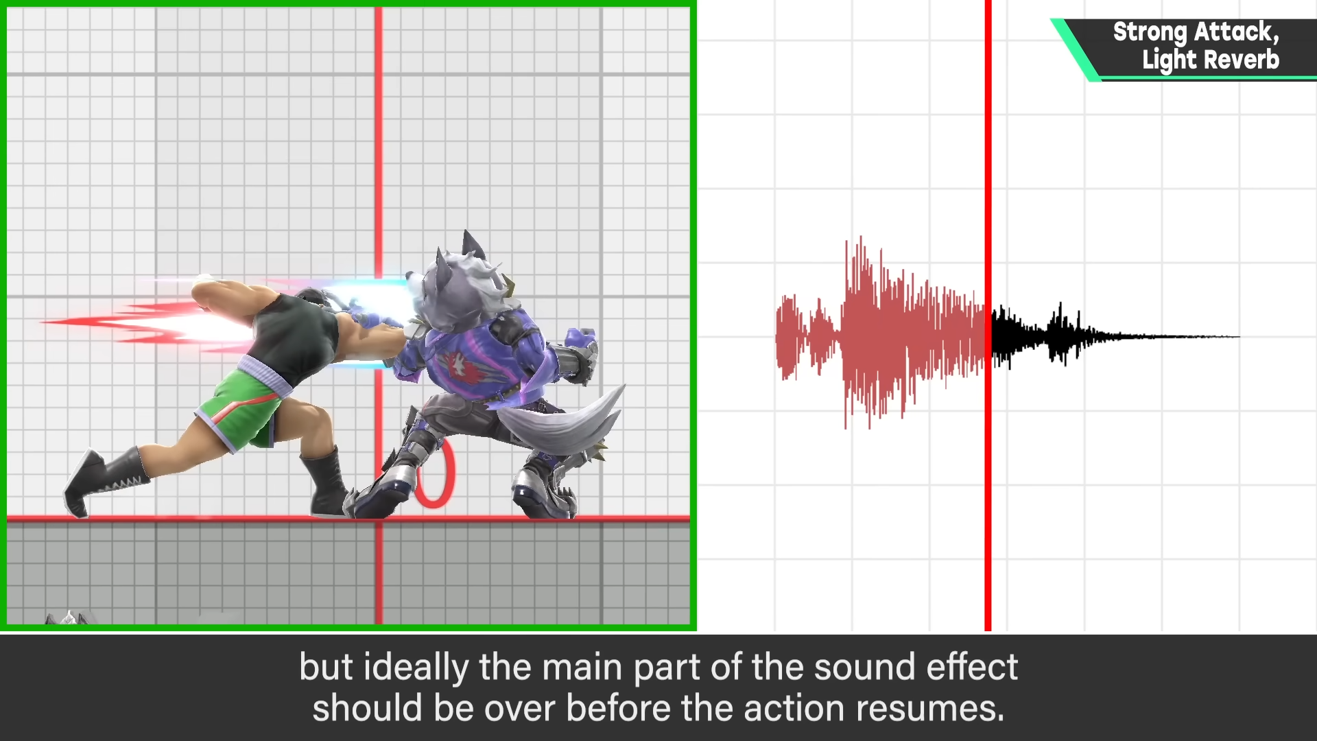 - 配合定格帧(Hitstop):强力攻击命中时画面会暂时冻结。理想情况下,主要的打击音效应该在画面停止的这段时间内播放完毕,这样当画面恢复运动时,声音也刚好收尾,节奏感最强。